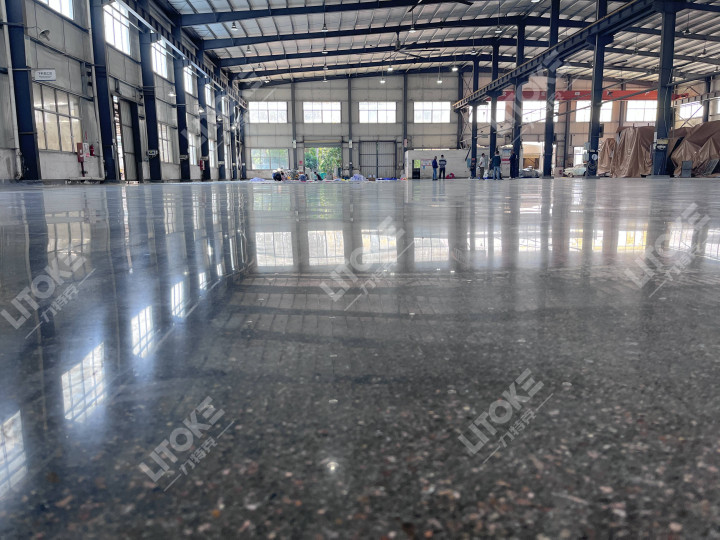 这种地坪是通过渗透到混凝土内部,发生化学反应形成致密结构。它最大的优点是“越磨越亮”,时间长了反而更光亮耐磨。基本能应对工厂绝大多数场景。尤其适合老旧水泥地面的改造,性价比极高。
